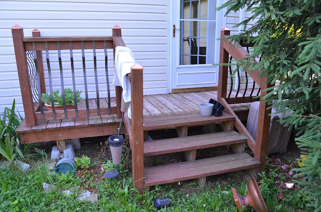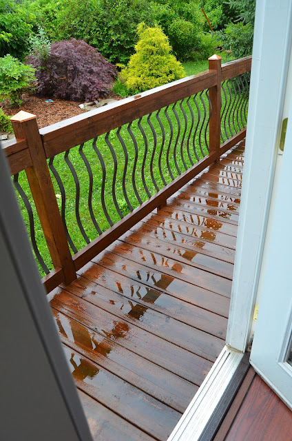 If you look closely, you can see the stripper doing its job. It started to rain in the midst of this chore, which was actually kind of great because it saved me from having to scrub and rinse the deck a million times. (PS - DON'T walk on the deck when it looks like this...it IS as slippery as it looks...not that I'm talking from experience or anything...)