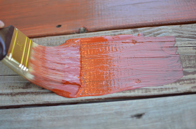 Another great thing about this stuff is that it is THICK; It isn't the normal watery stain stuff that is hard to work with. It is slightly thinner than a regular paint product and is easy to load up on a brush; See?